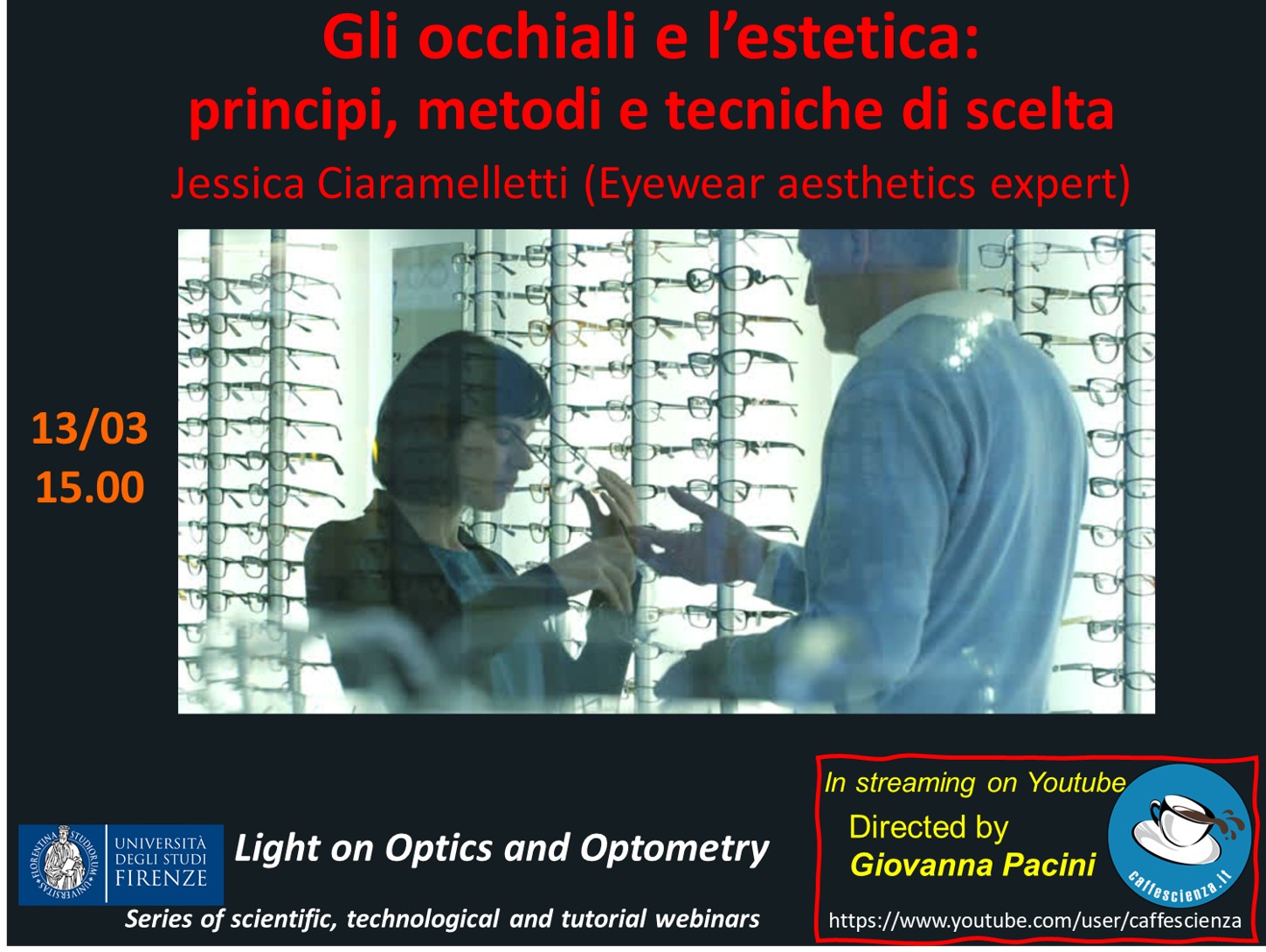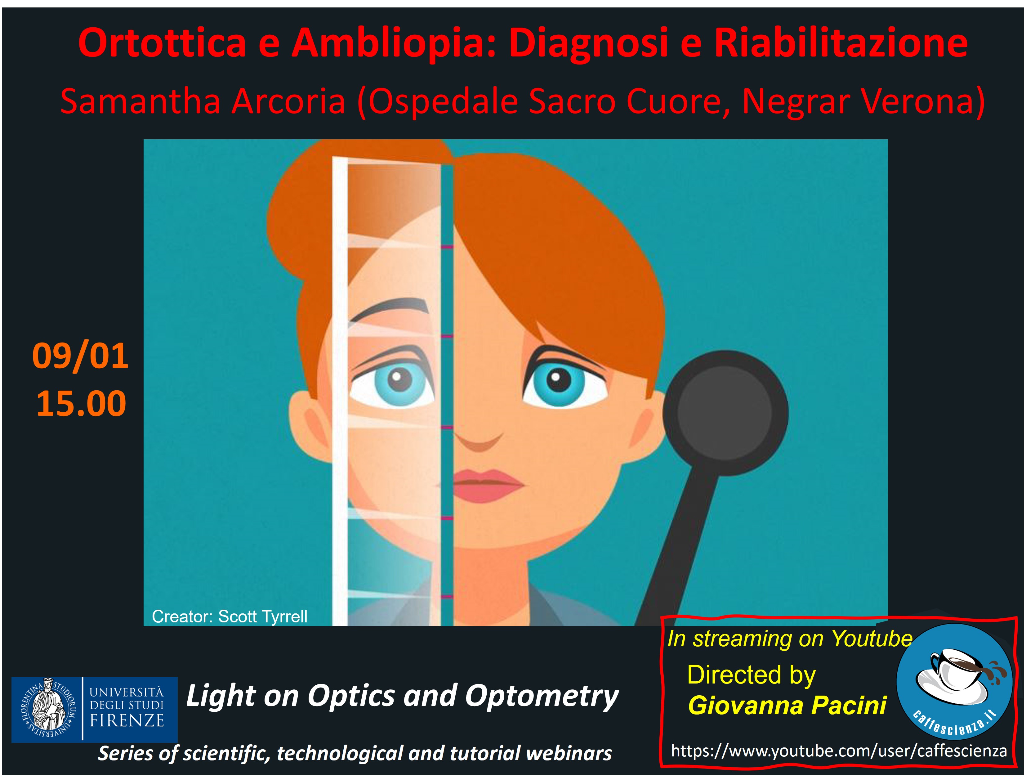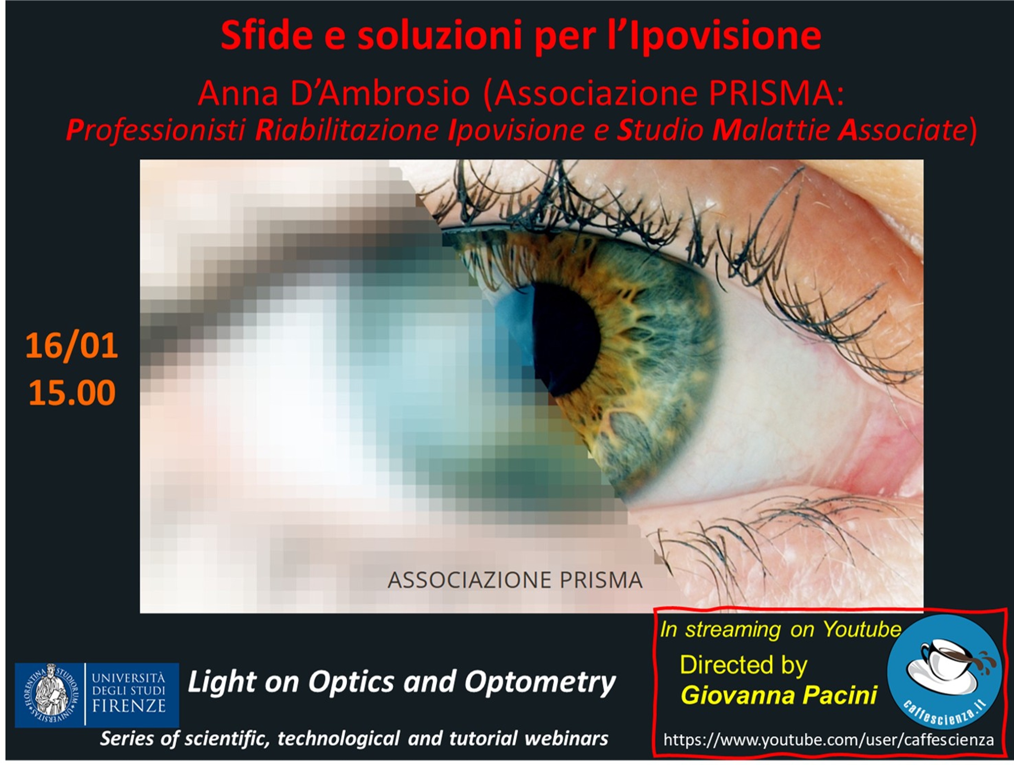Con l'intento di diffondere la conoscenza scientifica al di fuori dei confini accademici, rendendola accessibile e comprensibile a un pubblico più ampio, il Corso di Studi in Ottica e Optometria dell'Università di Firenze organizza serie di webinars informativi, didattici e divulgativi su temi che ruotano intorno all'ottica, la fisica, la scienza della visione, l'optometria e l'arte visiva.